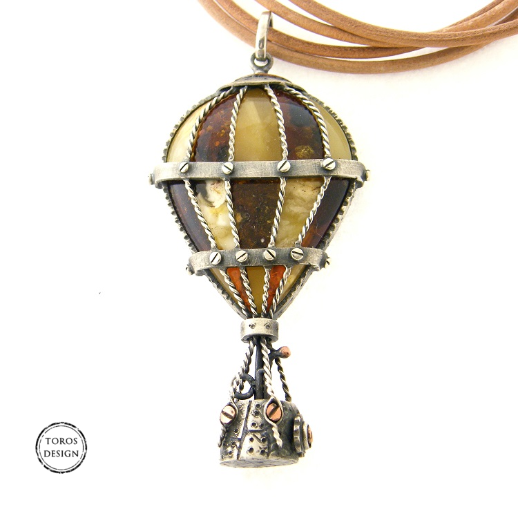 Został wykonany ręcznie ze srebra próby 925, z odrobiną miedzi. Balon zrobiony jest z bursztynów skomponowanych w kolorową mozaikę.