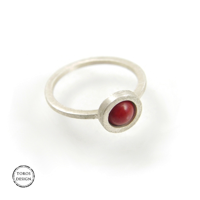 Pierścionek jest minimalistyczny i delikatny. Srebro zostało zmatowione, dzięki czemu mocniej kontrastuje z czerwonym koralem i uwydatnia jego barwę. Idealny wybór dla osób lubiących prosty styl i delikatność.