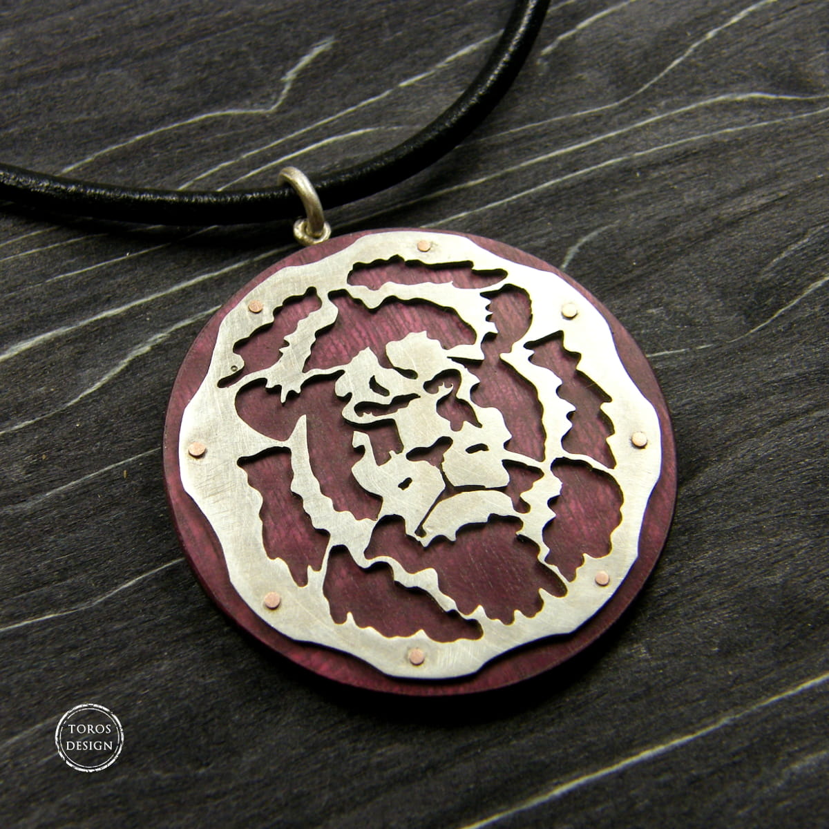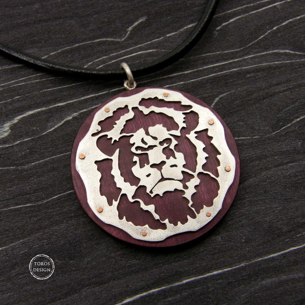 Lew - srebrny wisior na drewnie - znaki zodiaku