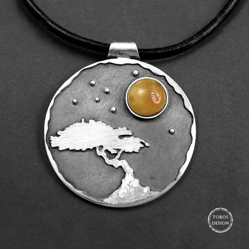 Noc księżycowa – srebrny wisior z bursztynem