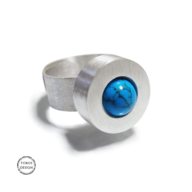 Pierścionek zachowany w oryginalnym i prostym stylu. Prosta forma i wyrazisty kolor turkusu sprawiają, że będzie idealną ozdobą dla kobiet lubiących nietypowe ozdoby.