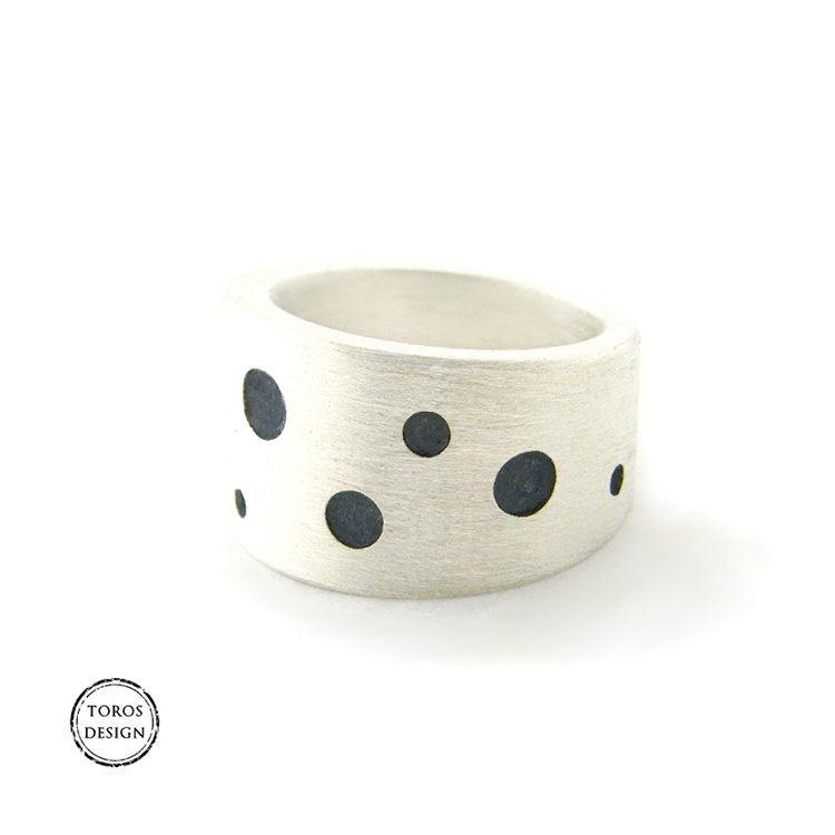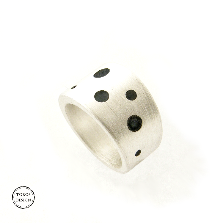 Srebrna, matowa obrączka z "dziurami"