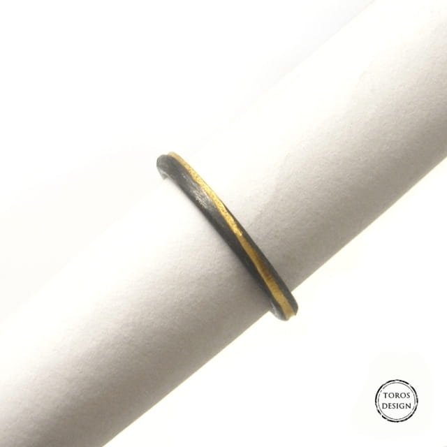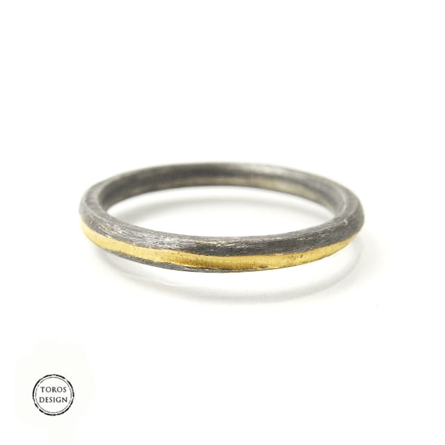 Obrączka wykonane ręcznie ze srebra próby 925. Oksydowana i częściowo złocona.