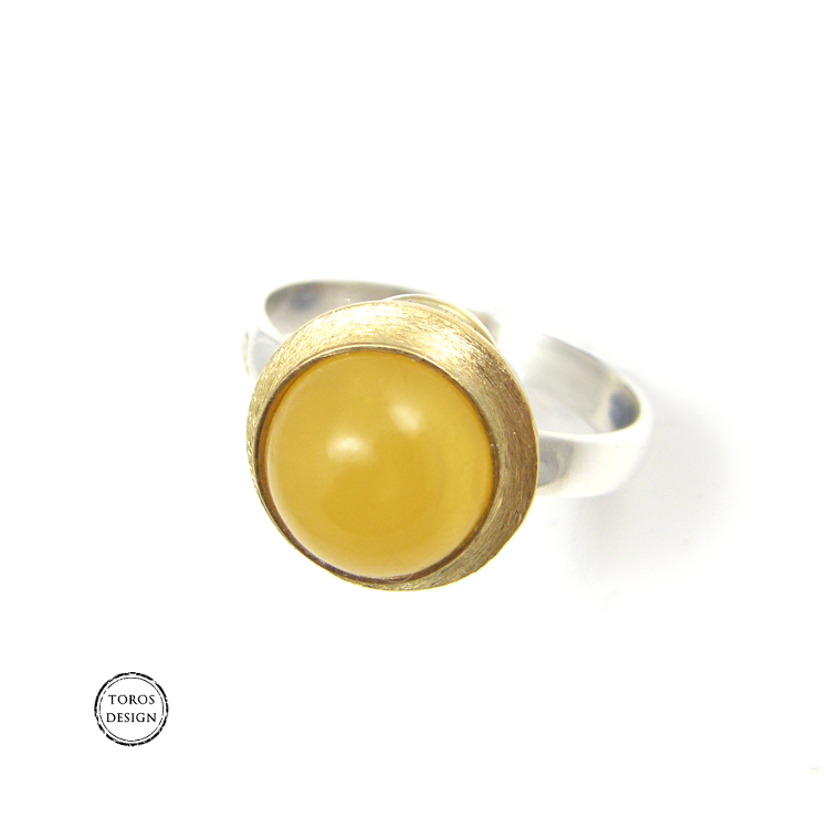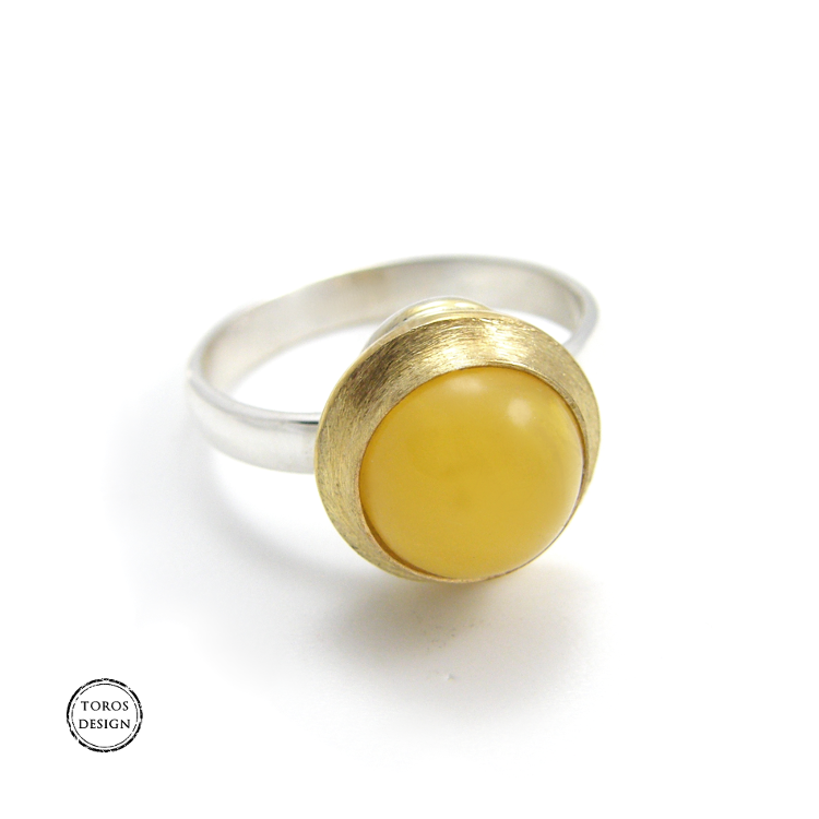 Srebrny delikatny pierścionek z naturalnym bursztynem.
