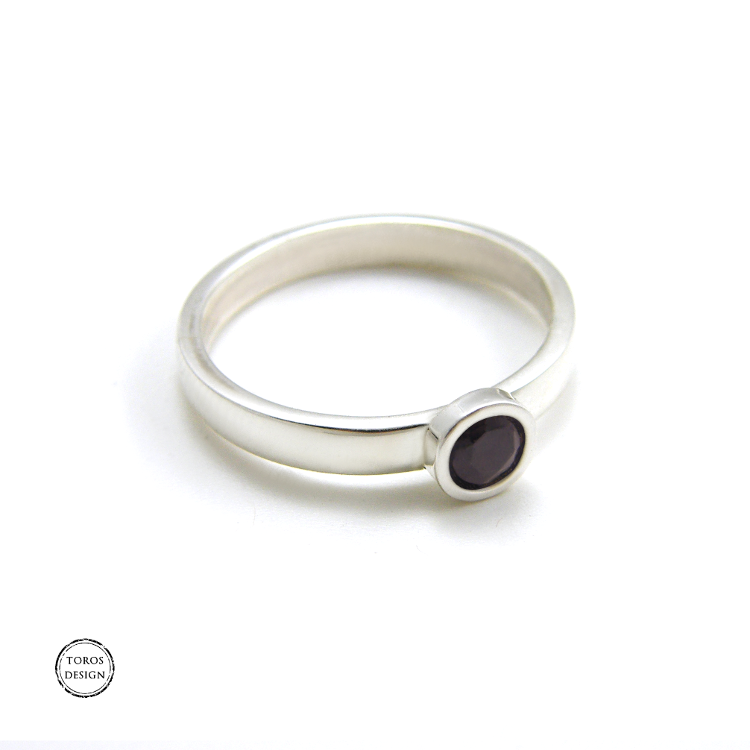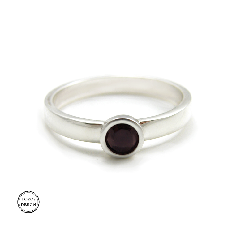 Srebrny delikatny pierścionek z naturalnym granatem.