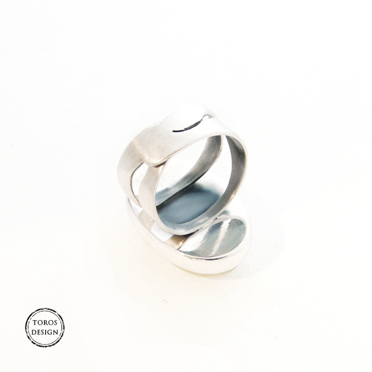 Wykonany ręcznie ze srebra próby 925. Oprawa polerowana, obrączka delikatnie zmatowiona.
