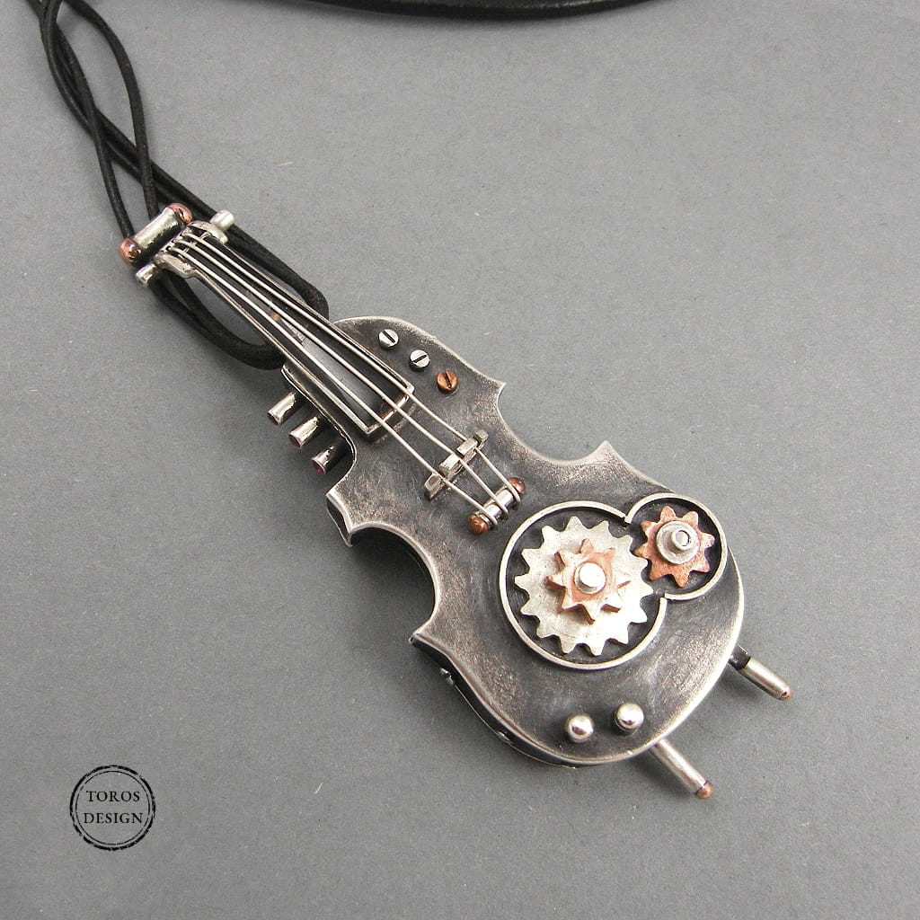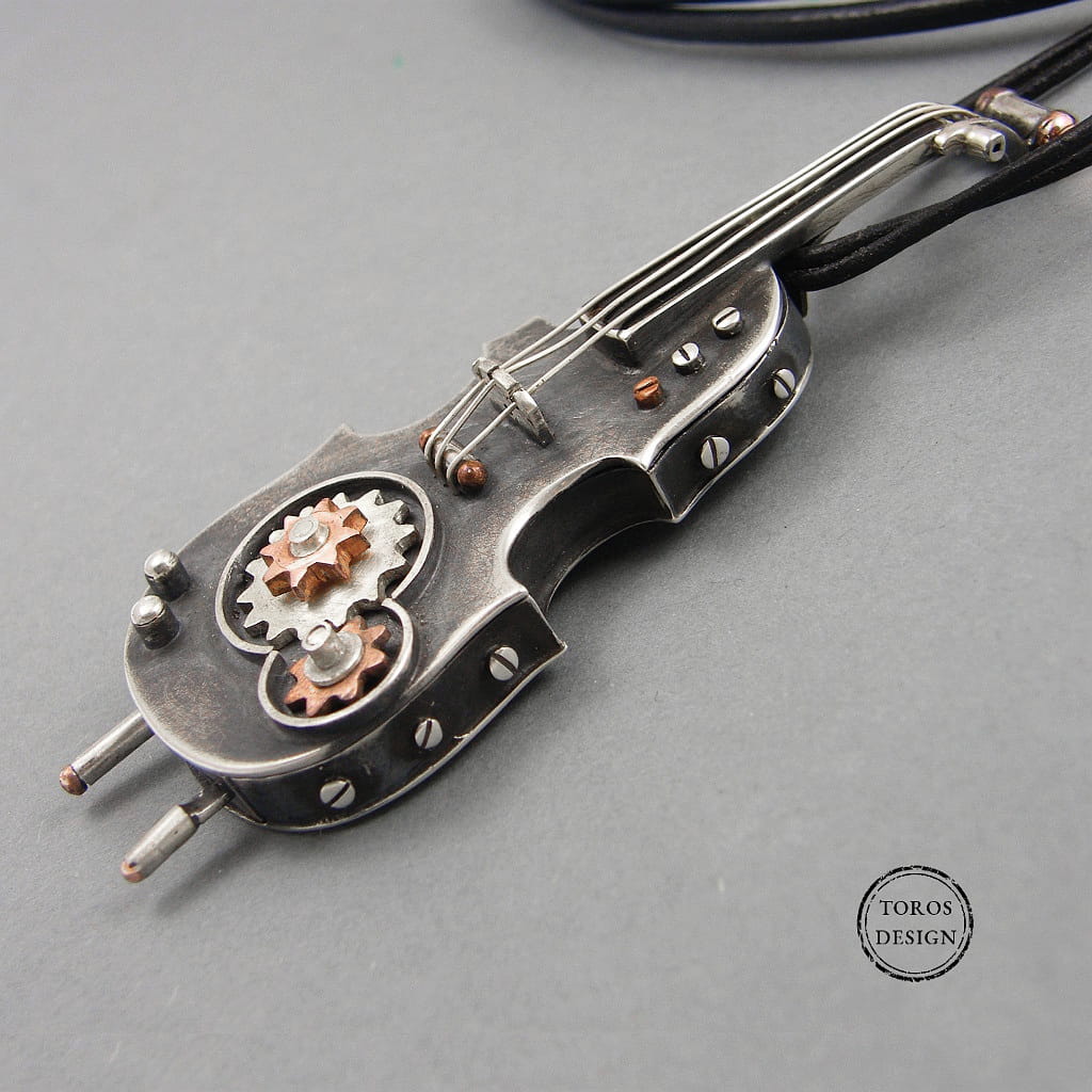 Srebrny wisior - steampunkowe skrzypce