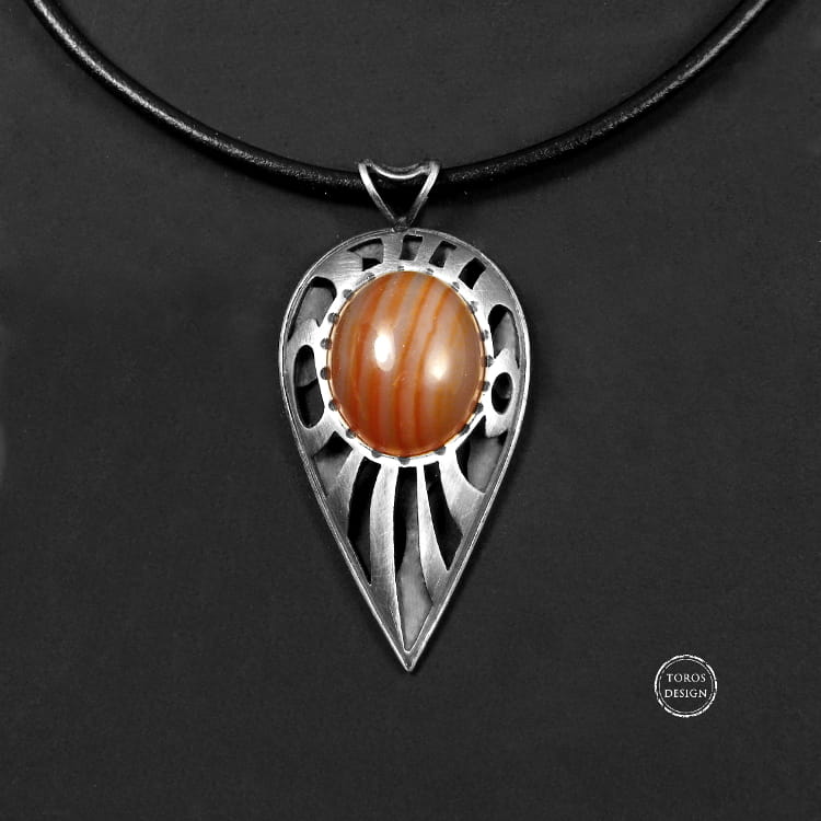 Wisiorek został wykonany ręcznie ze srebra próby 925. Srebro jest matowe i oksydowane.