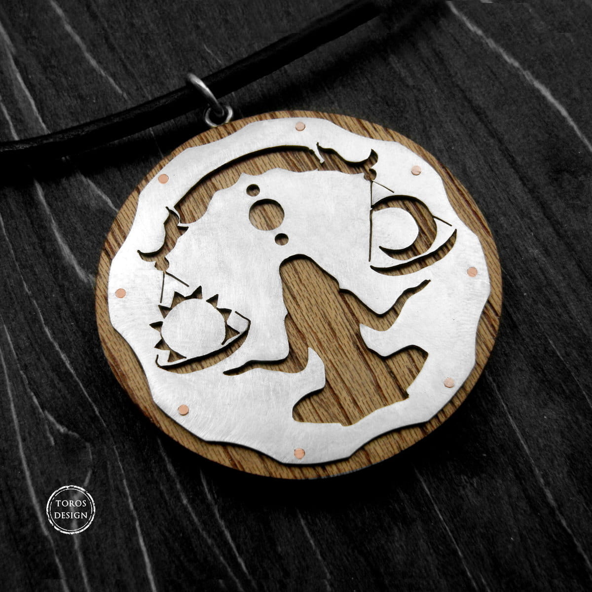 Waga - srebrny wisior na drewnie - znaki zodiaku