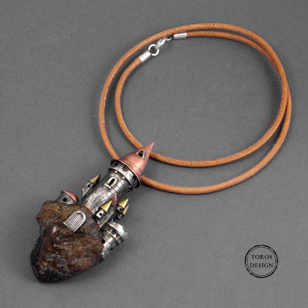 Wisior jest baśniowy i fantastyczny. Przywodzi na myśl bajkowe krainy i światy pełne przygód. Wykonany z drobnymi szczegółami zachwyca dokładnością i oryginalnością.